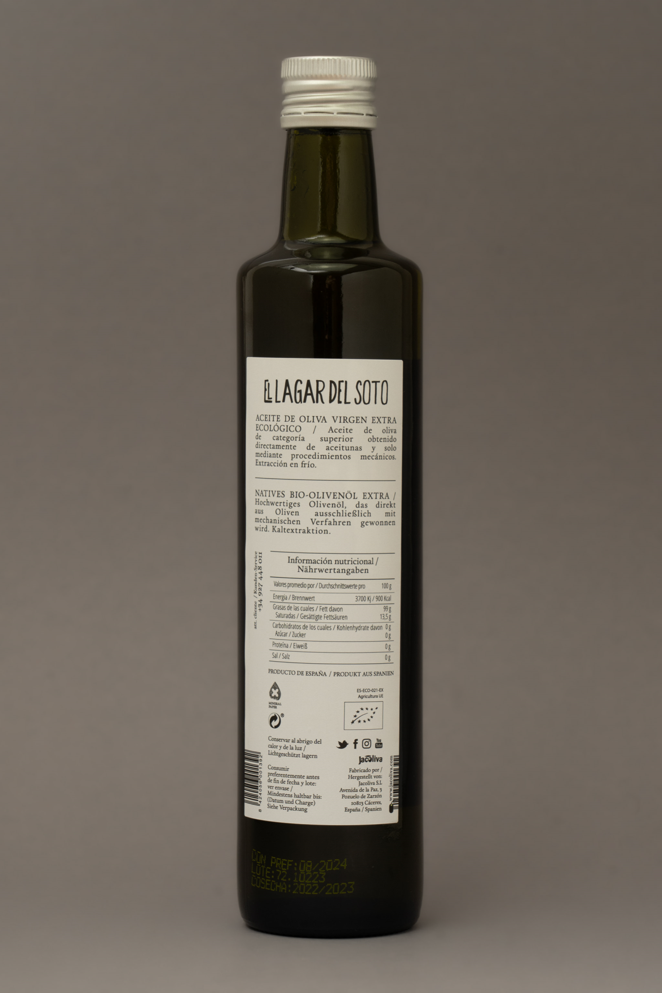 Das Olivenöl "El Lagar del Soto - Temprano" ist ausschliesslich aus der Olivensorte "Manzanilla Cacereña" erzeugt. Olivensorte aus den traditionellen Hochland-und Berg Anbau, bewirtschaftet durch Kleinbetrieben in den nördlichen Regionen von Caceres, Region Extremadura, wie die „Sierra de Gata“ und „Hurdes“.
